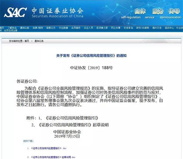 15日晚间,证券业协会发布《证券公司信用风险管理指引》,对券商以自有资金出资的业务进行信用风险管理。
